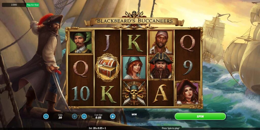 Visually, pirate-themed slots rely heavily on maritime symbols that have become universally associated with piracy. Treasure chests overflowing with gold, weathered maps marked with an “X,” wooden ships cutting through stormy waters, skull-and-crossbones flags, anchors, compasses, and cannons are commonly used to establish atmosphere. In games like Blackbeard’s Buccaneers, these elements are often presented with a slightly aged or weathered look to evoke the historical setting of the golden age of piracy. Backgrounds frequently depict tropical islands, open oceans, or ship decks, reinforcing the sense of being on a voyage.